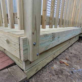 We were not sure how much of the framing needed to be replaced until we removed all deck boards. As more and more boards were removed we realized the entire deck needed to be removed except for one post. We then rebuilt the deck with the same dimensions using the same type of lumber. The railing was rebuilt and reinforced. The new deck now can be used without fear of falling through.